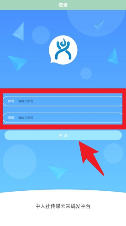 1. 打开APP后输入账号与密码,点击登录即可进入稿件采编平台。