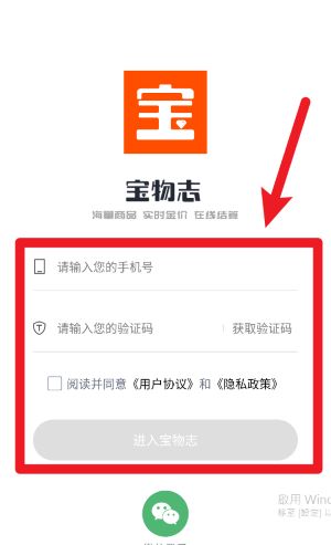 1、打开APP之后,首先输入您的手机号并获取验证码,勾选协议后点击进入宝物志按钮完成登录。