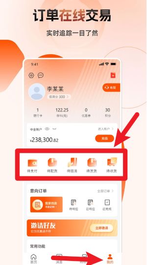 4、进入我的页面后可查看所有订单状态,包括待支付、待配货、待发货及待收货等,方便实时追踪交易流程。