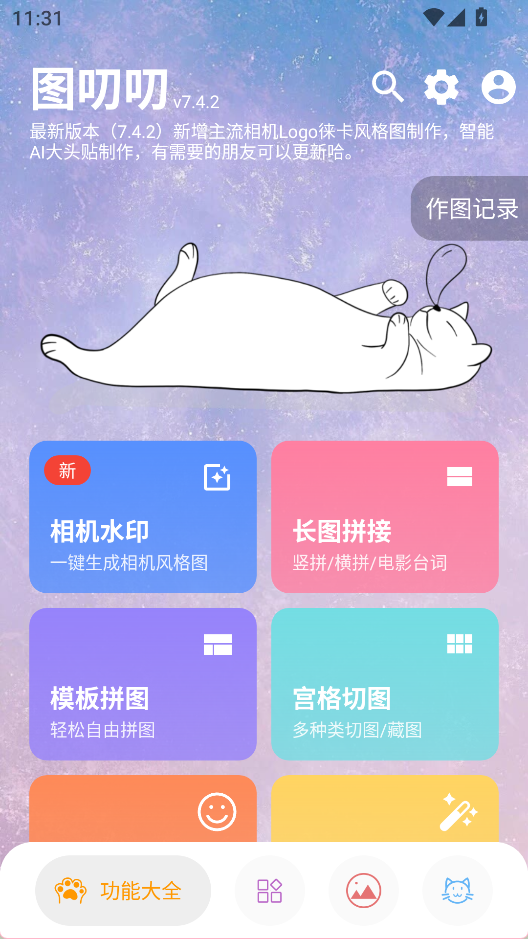 1、在功能大全中点击长图拼接功能
