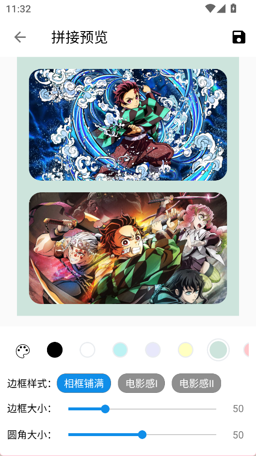 3、导入图片后,设置边框、背景,点击右上角按钮保存