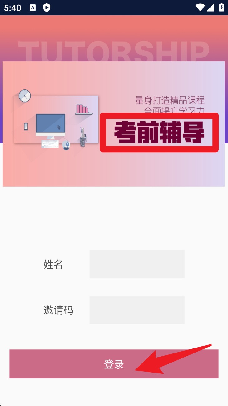 2. 若需进行考前辅导,可点击考前辅导进入独立界面,输入姓名与邀请码后完成登录操作。