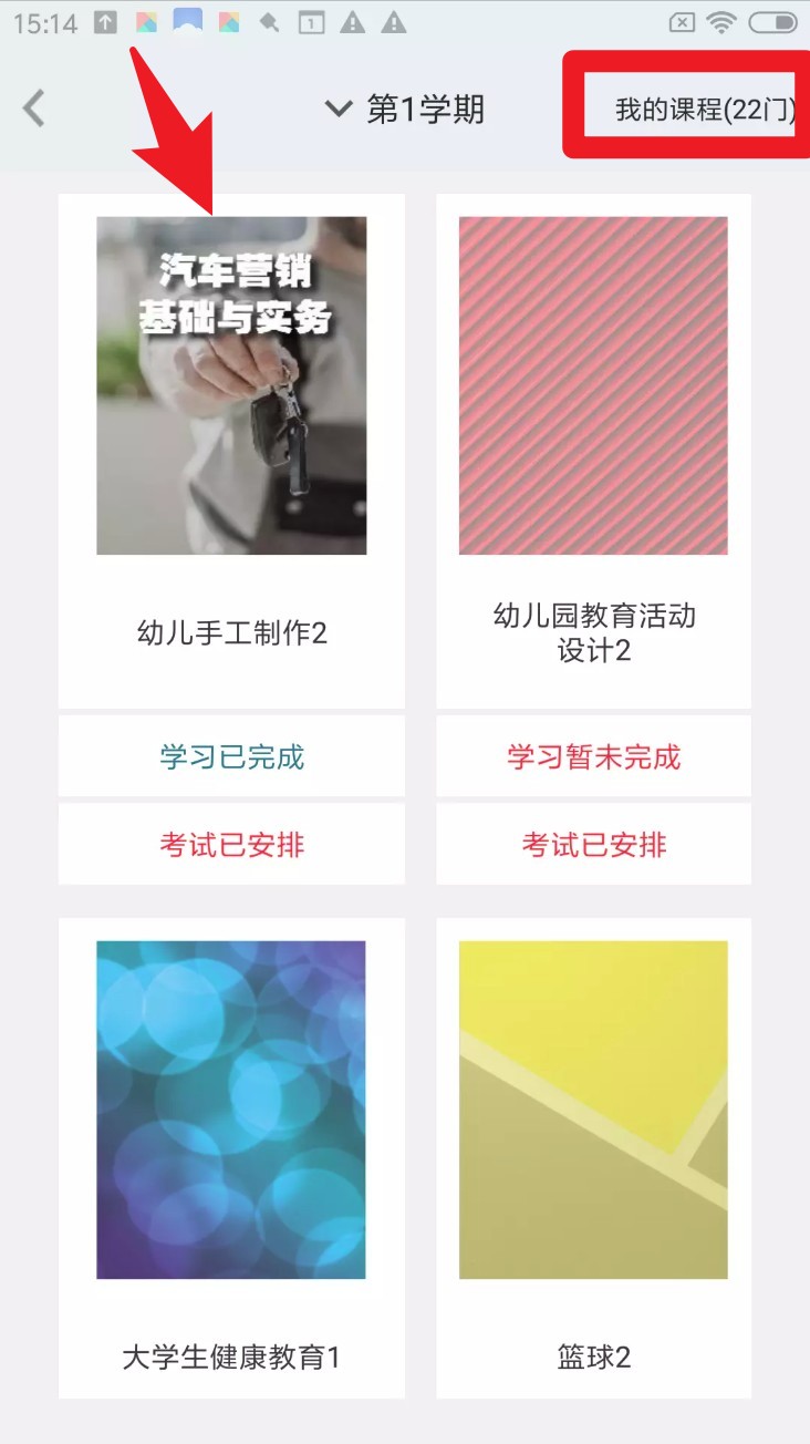 4. 在我的课程界面中,可查看每学期已安排的课程清单,点击课程封面即可进入详细学习内容。