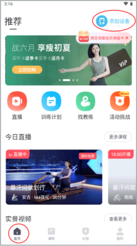 1、打开注册完账号,进入到首页,点击右上角的“添加设备”。