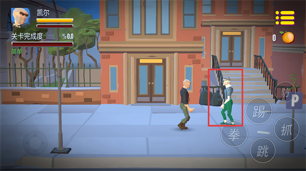 3.抓:敌人在正前方近距离点击抓即可抓住敌人,如果敌人过于强大则可能会挣扎抓不住。抓住敌人后继续按抓则是用膝盖顶他的脸,按踢则是踢他脸踢飞,按拳则是下勾拳打飞。