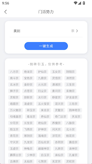 2、多样化取名工具:支持生成角色名、势力名、技能名等,风格涵盖古风、现代、奇幻等多种类型,贴合不同题材需求。