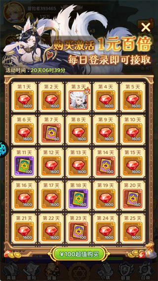 激活后每日登录领取大量钻石、角色碎片,低投入即可获取高价值资源。