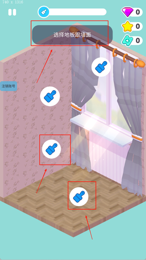 1、进入游戏后可以选择不同房间进行装修,每个房间都有独立的改造进度与收益数据。