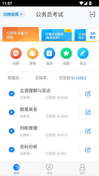 2、专项训练:针对言语理解、数量关系、判断推理等不同模块提供单独练习,帮助用户逐项突破薄弱环节。