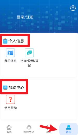 1、点击底部我的按钮,进入后可查看个人信息、提交咨询建议及访问帮助中心获取操作指引。