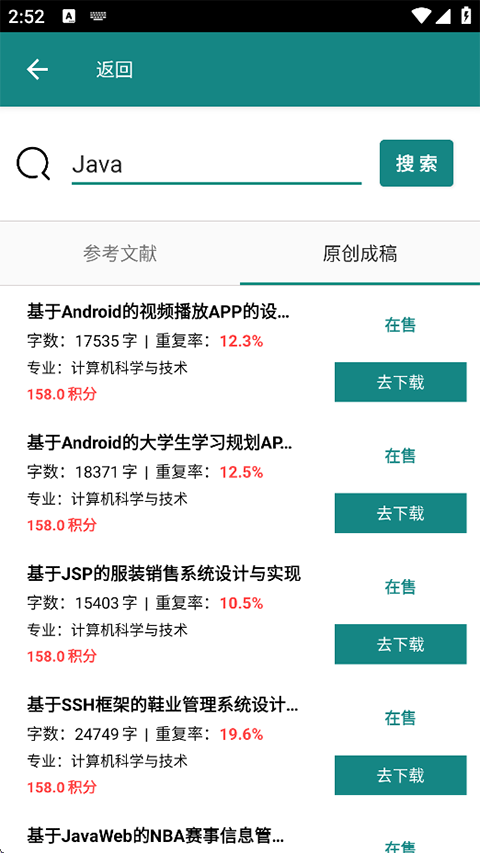 2、搜索栏可查询论文原创成稿或参考文献,点击即可进入浏览查看;