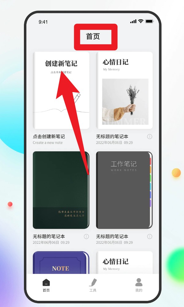 1. 进入首页点击左上角的创建新笔记卡片,即可开启一本新的手写笔记本,可输入文字、插图或手写记录,适合用来写日记、草稿或课堂笔记。