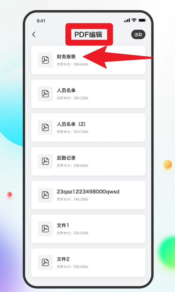 2. 前往PDF编辑功能,点击已有PDF文件如财务报表,即可进入标注界面,支持添加文本、圈注重点内容、划线标记等操作,适合学习或办公使用。