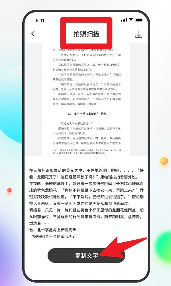 3. 在拍照扫描功能中导入或拍摄纸质资料,系统会自动识别文字并提供复制文字按钮,便于将纸面信息快速转为电子版笔记内容。
