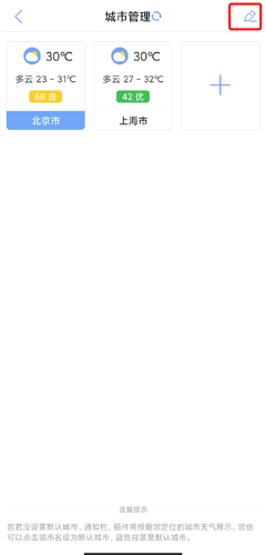2、城市管理页面中点击右上角的编辑按钮;