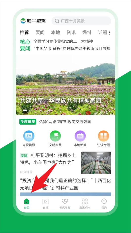 1、点击首页可浏览最新推荐、核心要闻及本地新闻,了解每日重要资讯和民生动态。