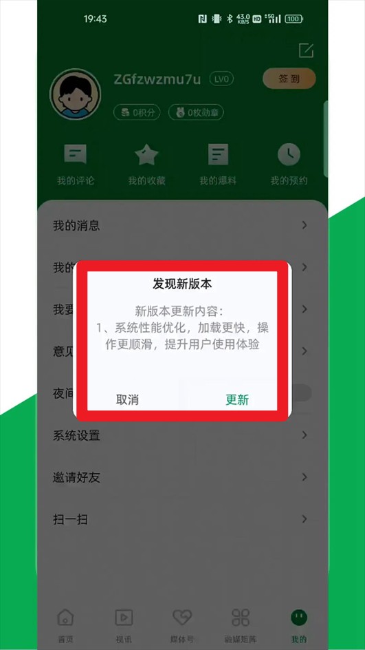 4、点击我的查看个人訊息、收藏与設定,如遇新版更新会弹窗提示并支援一键升级体验。