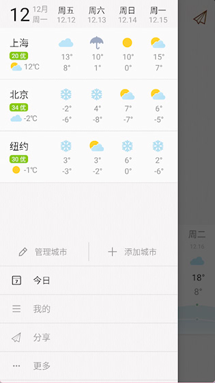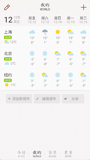 3、关心亲友冷暖:添加父母或朋友所在城市,随时了解他们那边的天气变化,及时提醒添衣防寒。