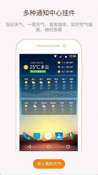 2、桌面挂件实用:可在手机桌面添加小工具,随时查看今日明日天气、空气状况及突发预警信息。