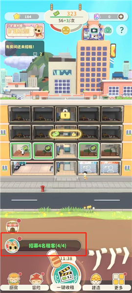 5、点击下方这个位置去张贴街头广告招点租客,并招募4名租客;