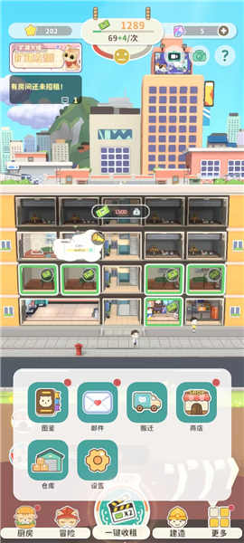 要根据租客的生活需求,合理规划并布局各类房间的建造位置。比如租客有购物需求时,可以在其居住区域附近建设超市。可供选择的房间类型十分丰富,涵盖餐厅、早餐铺、奶茶店、超市、取款机、抓娃娃机、空中花园等多种设施。
