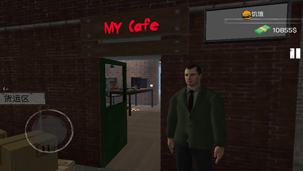 1、首先进入城市网吧模拟器游戏中,走到网吧的门口,会发现网吧的门上挂着一个打开、关闭的牌子。