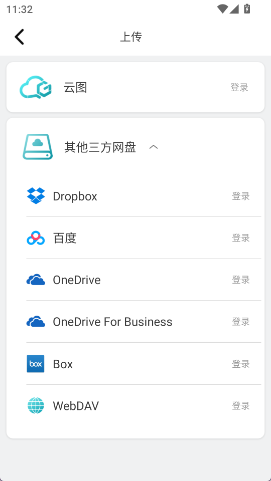 3、有多种云存储服务可以选择,登录对应账号完成上传