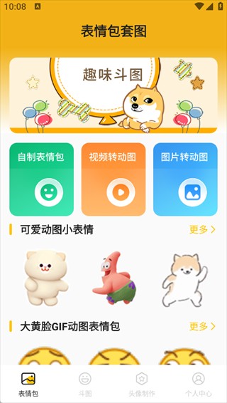 1、打开表情包生成App,挑选所需功能,如自制表情包、视频转动图、图片转动图、头像制作等;
