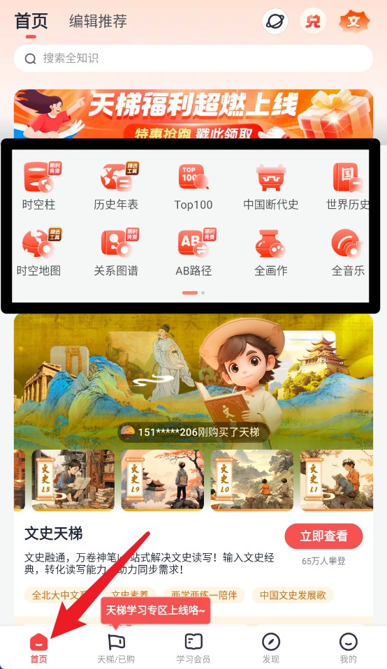 1、首页提供丰富历史工具如时空柱、关系图谱等,用户可点击图标快速进入相应功能模块,获取多维度知识内容。
