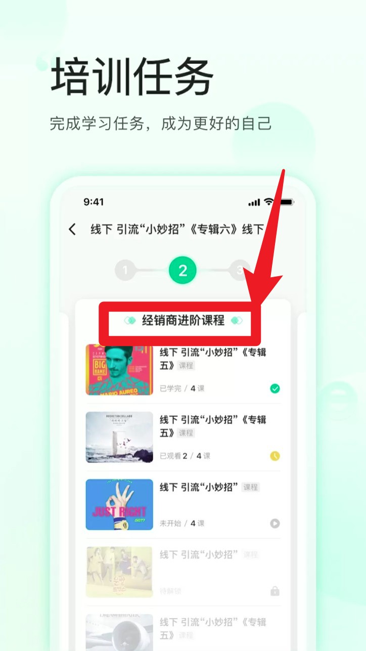 4. 返回课程模块,选择培训任务中的进阶课程,按顺序完成指定学习任务并记录学习进度。