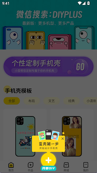 1、点击底部“我要DIY”开始设计手机壳