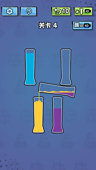 3、所有相同颜色的液体都在同一玻璃杯中,即可过关!