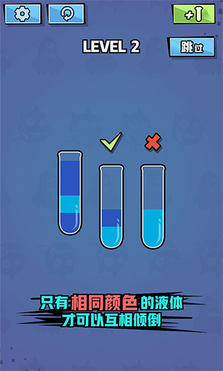 2、注意,只有颜色相同的液体才可以互相倾倒,