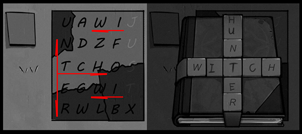 3、根据(字母提示)解开【笔记本—十字锁】,如图。获得七巧板,玩完获得(提示:1T)。