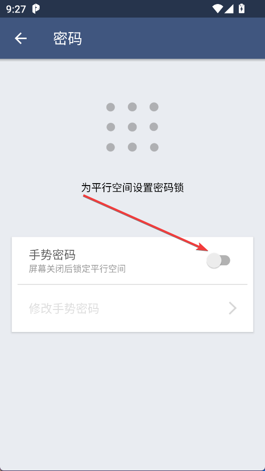 5、安全防护:支持指纹或图案密码锁定平行空间入口,防止他人随意查看或操作私密分身。