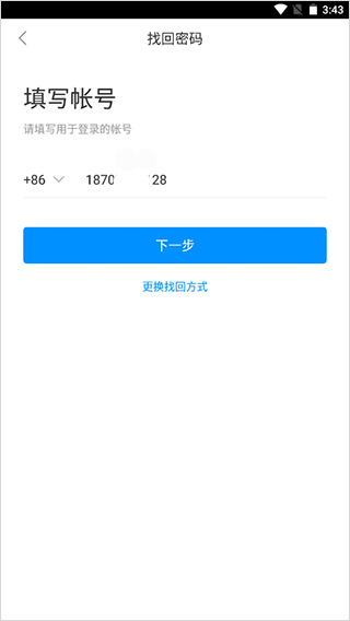 3、输入手机号后点击【下一步】,填写验证码即可重置密码;