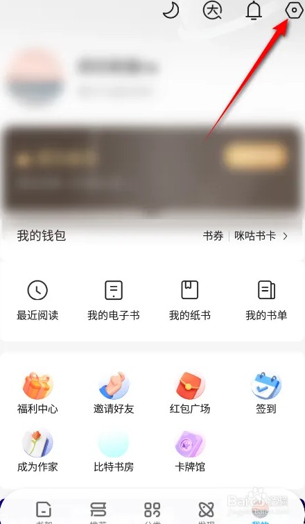 2. 进入后,点击页面右上方的设置图标,进入设置页面,如图所示。