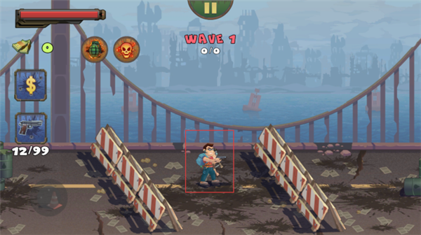 4、关注上方【WAVE-1】等波数提示,每波僵尸数量不同,合理分配弹药,持续攻击,顺利通过每一波。