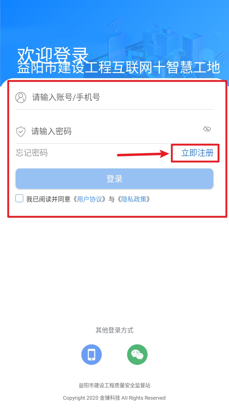 1. 打开App进入登录页,点击右侧立即注册开始创建新账号流程。