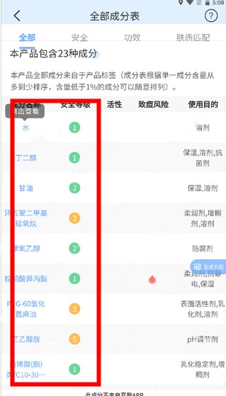 3、点击“查看全部成分”按钮,即可跳转至详细的成分列表页面。