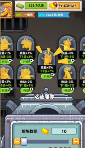 3、而且之前击败的对手都成为雕像,可以直接提高我们的收益。