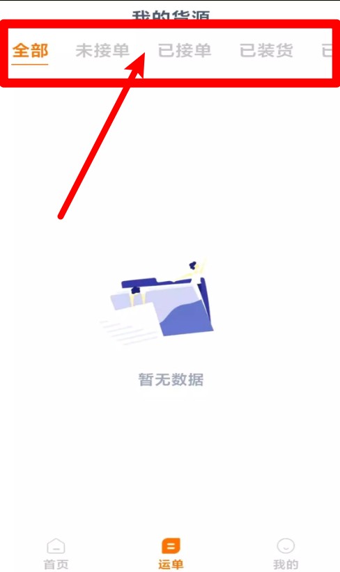 4.进入我的货源页面,顶部分类包含全部、未接单、已接单、已装货、已完结,一目了然。
