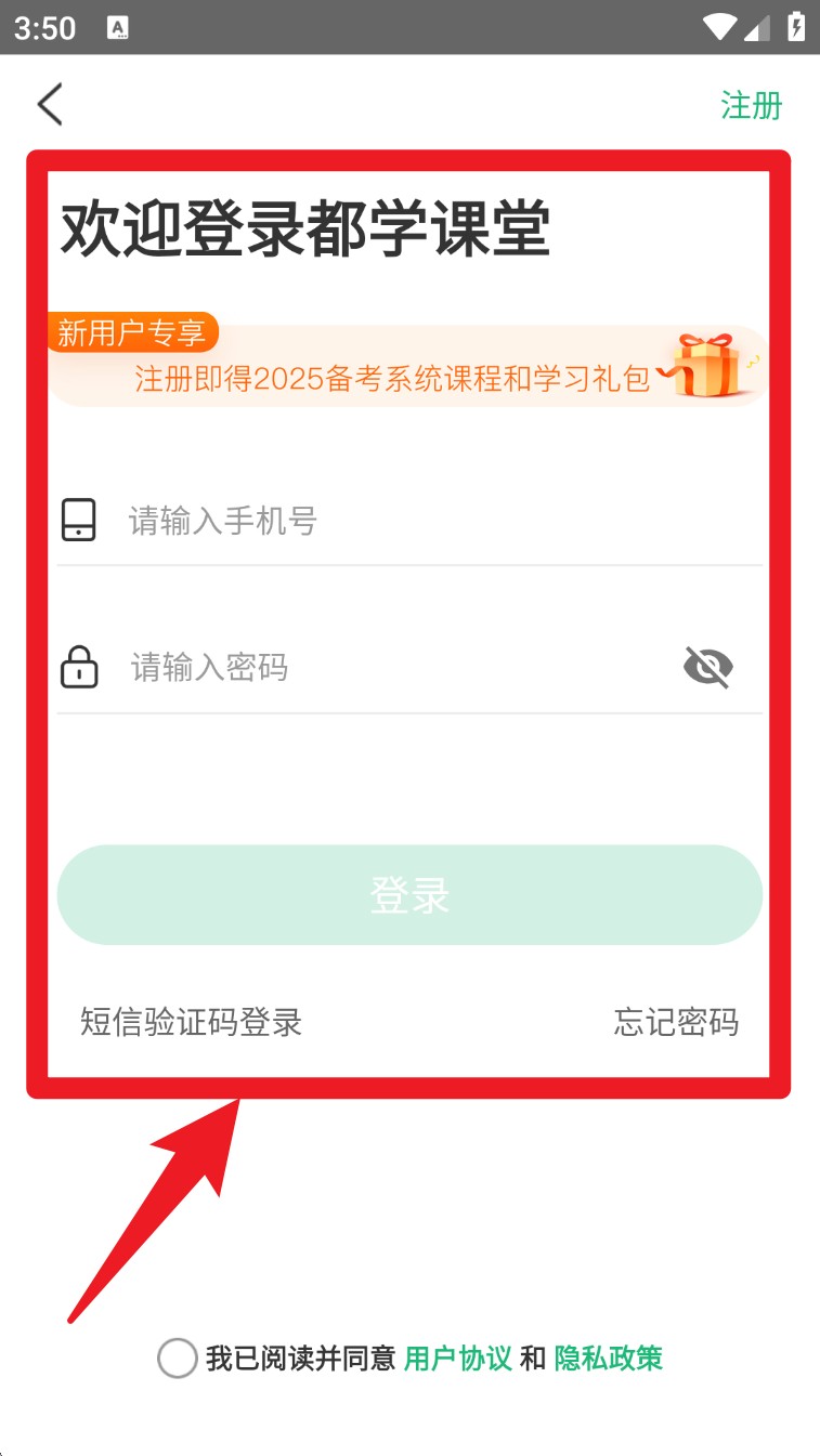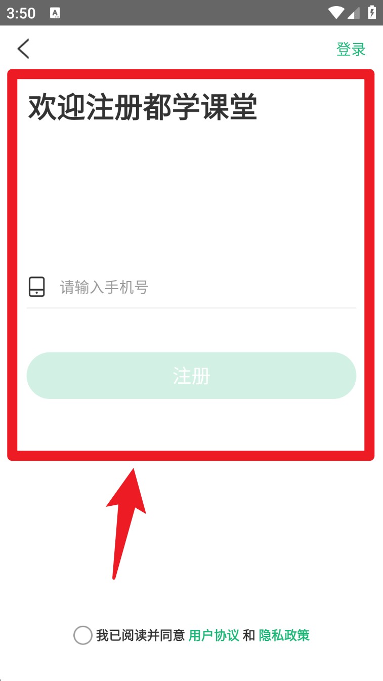 1. 打开App,进入注册页面,输入手机号后点击注册。首次登录需勾选同意下方的用户协议,完成后即可创建账号。
