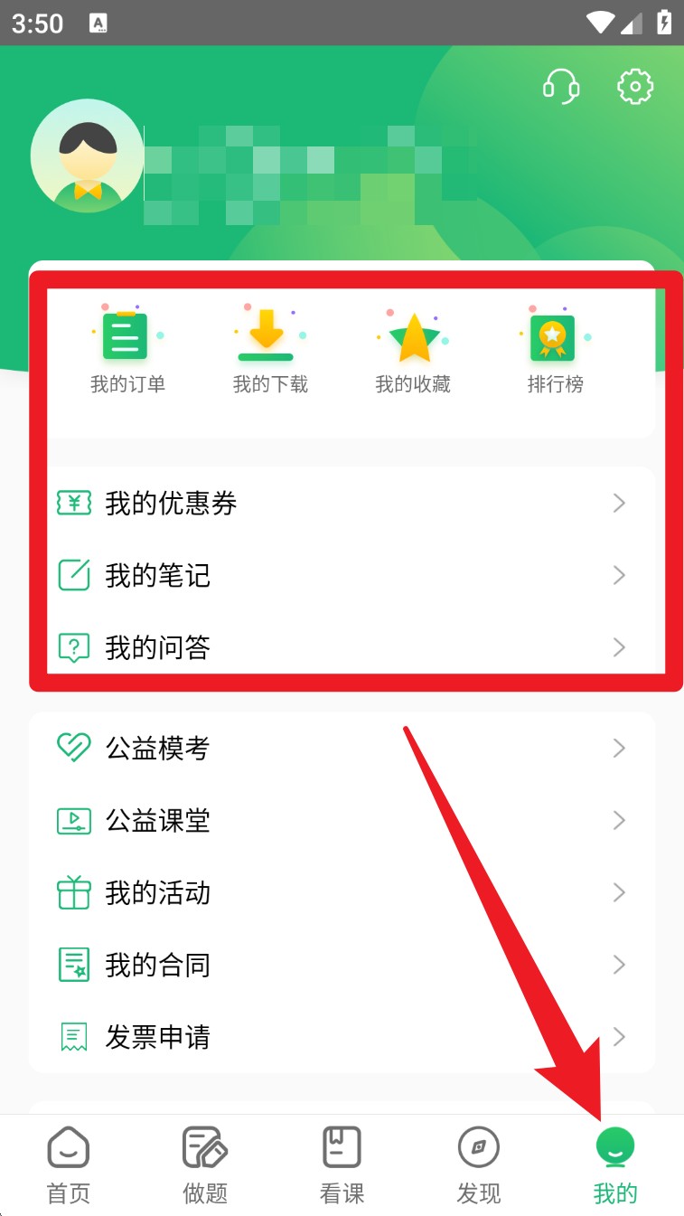 3. 登录后点击下方导航栏中的我的,可查看订单、下载、收藏、优惠券、笔记等个人资料与功能选项。
