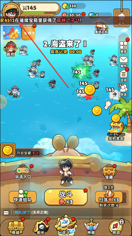 5、社交协作与福利体系:支持好友助战、海盗团组建,并提供每日登录、累计挂机等丰厚福利,降低养成门槛,提升长期可玩性。