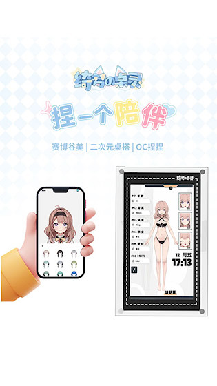 绮梦的桌灵是一款以二次元虚拟角色为主题的桌面美化应用,为喜爱动漫风格的人们打造,可以自由设计属于自己的虚拟角色,从外貌、服装到性格设定都能按喜好调整,完成角色创建后,会出现在手机桌面上,能进行简单互动和提醒。