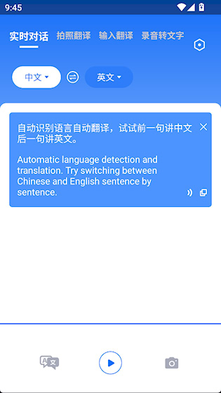 3、语音翻译:支持实时语音输入,将说话内容转化为目标语言的文字或语音输出。