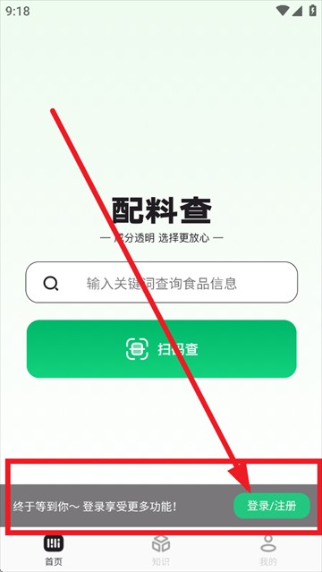 1、下载安装后打开软件,点击下方“登录/注册”按钮;