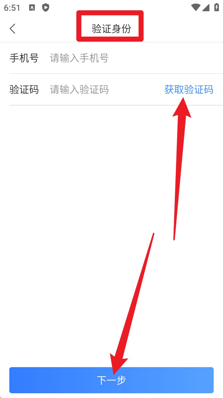 2. 若忘记密码可点击忘记密码,进入身份验证页面,输入手机号后获取验证码完成验证。