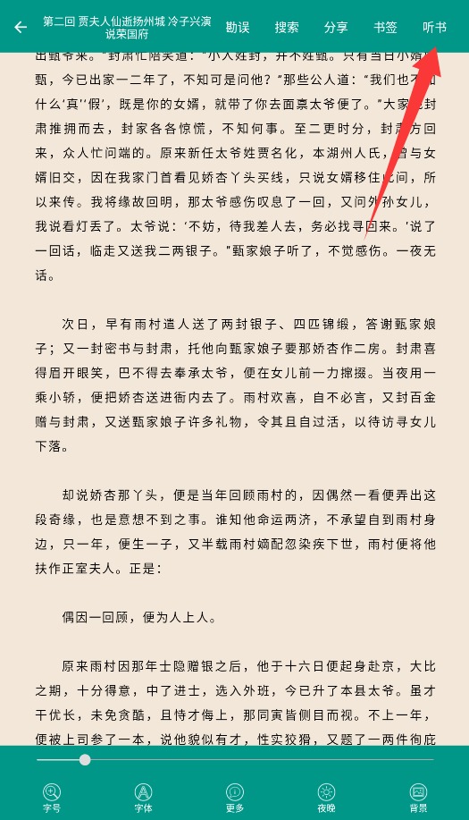 3、在阅读界面随意点击屏幕中央,调出功能栏,点击右上角找到听书按钮即可开启听书模式。